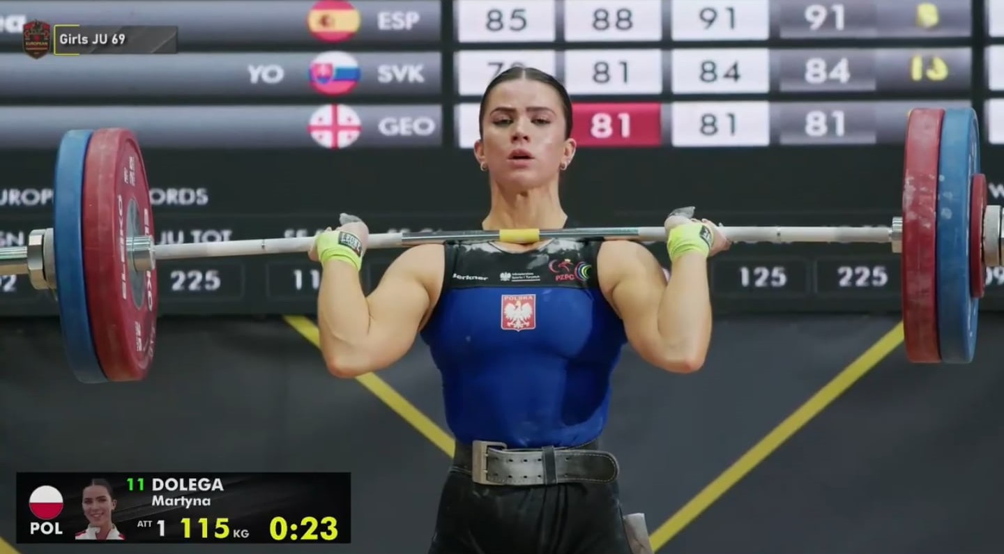 Martyna Dołęga zdobyła także złoto w rwaniu oraz brąz w podrzucie. To pierwszy złoty medal dla polskiej reprezentacji w zawodach rangi Mistrzostw Europy i Świata w 2025 roku – tym bardziej powód do dumy! 🥇🇵🇱